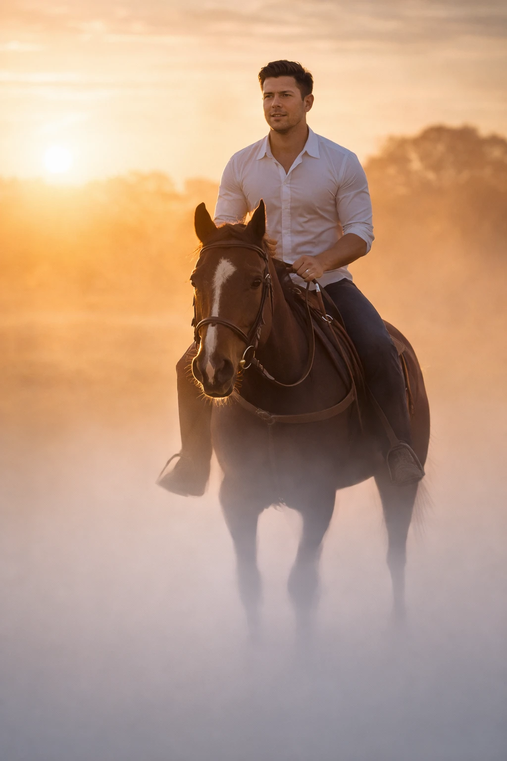 Cinematic Sunrise Horse Rider Portrait